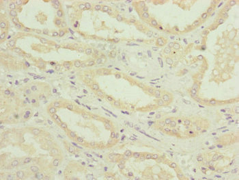 Immunohistochemistry of paraffin-embedded human kidney tissue using CSB-PA883413ESR2HU at dilution of 1:100