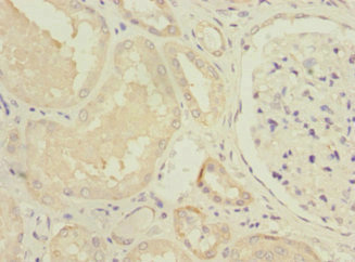 Immunohistochemistry of paraffin-embedded human kidney tissue using CSB-PA015668ESR2HU at dilution of 1:100