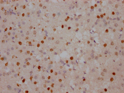 IHC image of CSB-PA618018DA01HU diluted at 1:100 and staining in paraffin-embedded human brain tissue performed on a Leica BondTM system. After dewaxing and hydration, antigen retrieval was mediated by high pressure in a citrate buffer (pH 6.0). Section was blocked with 10% normal goat serum 30min at RT. Then primary antibody (1% BSA) was incubated at 4°C overnight. The primary is detected by a Goat anti-rabbit IgG labeled by HRP and visualized using 0.05% DAB.