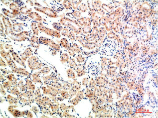 Immunohistochemical analysis of paraffin-embedded Rat Kidney Tissue using IkB α Rabbit pAb diluted at 1:200