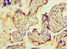Immunohistochemistry of paraffin-embedded human placenta tissue using CSB-PA839418LA01HU at dilution of 1:100