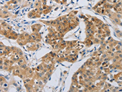 The image on the left is immunohistochemistry of paraffin-embedded Human esophagus cancer tissue using CSB-PA904747(NRP1 Antibody) at dilution 1/25, on the right is treated with fusion protein. (Original magnification: ×200)