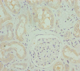 Immunohistochemistry of paraffin-embedded human kidney tissue using CSB-PA880985ESR2HU at dilution of 1:100