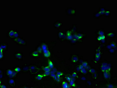 Immunofluorescent analysis of 293T cells using CSB-PA868379LA01HU at dilution of 1:100 and Alexa Fluor 488-congugated AffiniPure Goat Anti-Rabbit IgG(H+L)