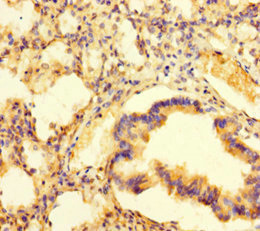 Immunohistochemistry of paraffin-embedded human lung tissue using CSB-PA885746LA01HU at dilution of 1:100