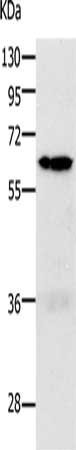 Gel: 10%SDS-PAGE, Lysate: 40 μg, Lane 1-2: 293T cells, K562 cells, Primary antibody: CSB-PA238998(PAK1 Antibody) at dilution 1/700, Secondary antibody: Goat anti rabbit IgG at 1/8000 dilution, Exposure time: 1 minute