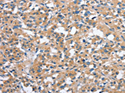 The image on the left is immunohistochemistry of paraffin-embedded Human liver cancer tissue using CSB-PA552213(PAK2 Antibody) at dilution 1/40, on the right is treated with fusion protein. (Original magnification: ×200)