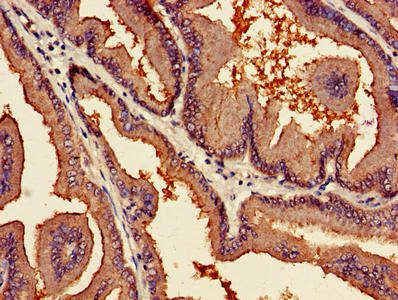 Immunohistochemistry of paraffin-embedded human prostate cancer using CSB-PA017456LA01HU at dilution of 1:100