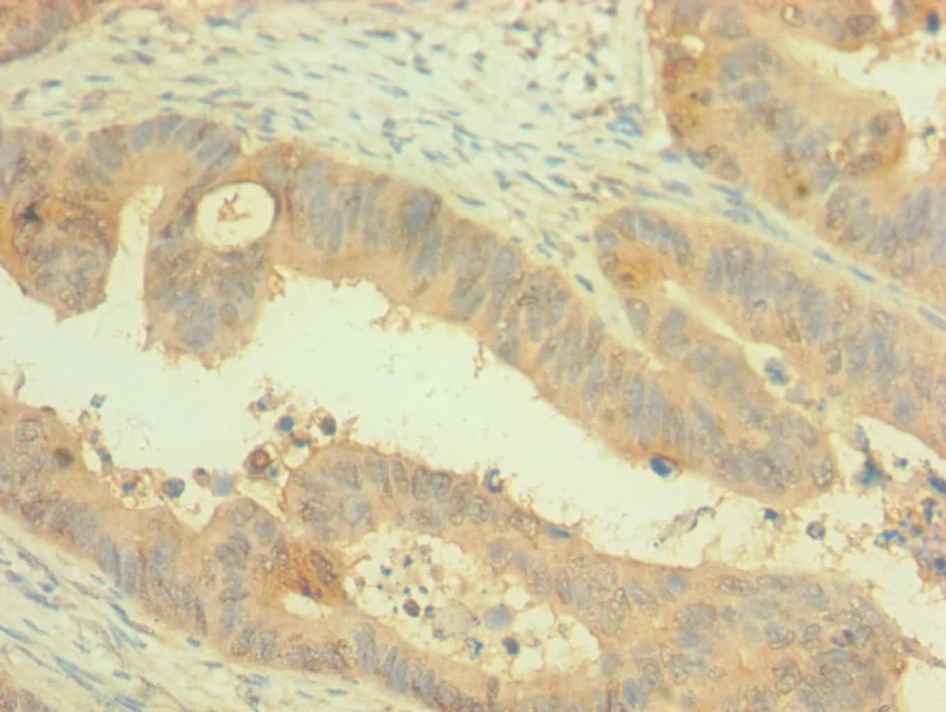 Immunohistochemistry of paraffin-embedded human colon cancer using CSB-PA017490ESR1HU at dilution of 1:100