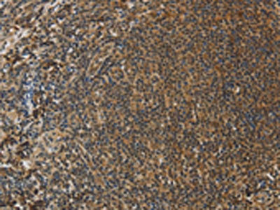 The image on the left is immunohistochemistry of paraffin-embedded Human tonsil tissue using CSB-PA166329(PCP4 Antibody) at dilution 1/50, on the right is treated with fusion protein. (Original magnification: ×200)