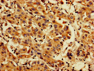 IHC image of CSB-PA04874A0Rb diluted at 1:200 and staining in paraffin-embedded human liver cancer performed on a Leica BondTM system. After dewaxing and hydration, antigen retrieval was mediated by high pressure in a citrate buffer (pH 6.0). Section was blocked with 10% normal goat serum 30min at RT. Then primary antibody (1% BSA) was incubated at 4°C overnight. The primary is detected by a biotinylated secondary antibody and visualized using an HRP conjugated SP system.
