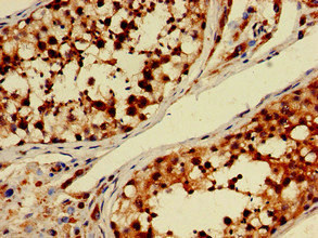 Immunohistochemistry of paraffin-embedded human testis tissue using CSB-PA875726LA01HU at dilution of 1:100
