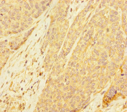 Immunohistochemistry of paraffin-embedded human ovarian cancer using CSB-PA2109ESR2HU at dilution of 1:100