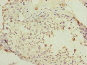 Immunohistochemistry of paraffin-embedded human testis tissue using CSB-PA017716ESR2HU at dilution of 1:100