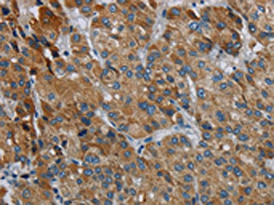The image on the left is immunohistochemistry of paraffin-embedded Human liver cancer tissue using CSB-PA445627(PDSS2 Antibody) at dilution 1/30, on the right is treated with synthetic peptide. (Original magnification: ×200)