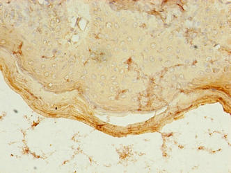 Immunohistochemistry of paraffin-embedded human skin tissue using CSB-PA774807LA01HU at dilution of 1:100