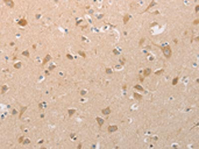 The image on the left is immunohistochemistry of paraffin-embedded Human brain tissue using CSB-PA054080(PGA3/PGA4/PGA5 Antibody) at dilution 1/40, on the right is treated with synthetic peptide. (Original magnification: ×200)