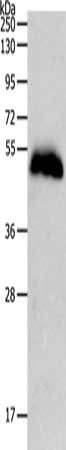 Gel: 10%SDS-PAGE, Lysate: 60 μg, Lane: Human liver cancer tissue, Primary antibody: CSB-PA054080(PGA3/PGA4/PGA5 Antibody) at dilution 1/700, Secondary antibody: Goat anti rabbit IgG at 1/8000 dilution, Exposure time: 1 minute
