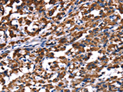 The image on the left is immunohistochemistry of paraffin-embedded Human thyroid cancer tissue using CSB-PA926901(PHB Antibody) at dilution 1/30, on the right is treated with fusion protein. (Original magnification: ×200)