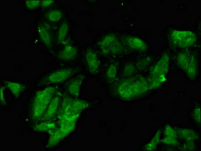 Immunofluorescent analysis of Hela cells using CSB-PA017911LA01HU at dilution of 1:100 and Alexa Fluor 488-congugated AffiniPure Goat Anti-Rabbit IgG(H+L)