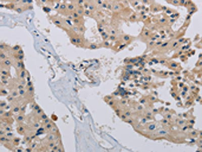 The image on the left is immunohistochemistry of paraffin-embedded Human prostate cancer tissue using CSB-PA152383(PHKA2 Antibody) at dilution 1/30, on the right is treated with synthetic peptide. (Original magnification: ×200)