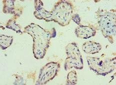 Immunohistochemistry of paraffin-embedded human placenta tissue using CSB-PA017957ESR1HU at dilution of 1:100