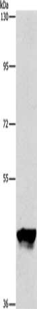 Gel: 10%SDS-PAGE, Lysate: 40 μg, Lane: K562 cells, Primary antibody: CSB-PA180077(PIP4K2A Antibody) at dilution 1/950, Secondary antibody: Goat anti rabbit IgG at 1/8000 dilution, Exposure time: 1 minute