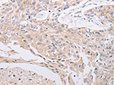 The image on the left is immunohistochemistry of paraffin-embedded Human esophagus cancer tissue using CSB-PA571908(PIWIL1 Antibody) at dilution 1/30, on the right is treated with fusion protein. (Original magnification: ×200)