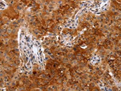 The image on the left is immunohistochemistry of paraffin-embedded Human lung cancer tissue using CSB-PA628429(PLAUR Antibody) at dilution 1/50, on the right is treated with fusion protein. (Original magnification: ×200)