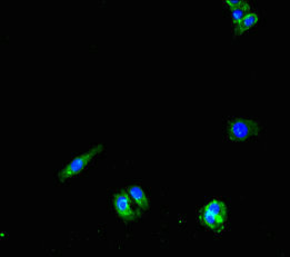 Immunofluorescent analysis of MCF-7 cells using CSB-PA843295LA01HU at dilution of 1:100 and Alexa Fluor 488-congugated AffiniPure Goat Anti-Rabbit IgG(H+L)