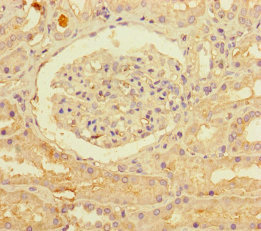 Immunohistochemistry of paraffin-embedded human kidney tissue using CSB-PA843295LA01HU at dilution of 1:100