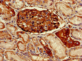 Immunohistochemistry of paraffin-embedded human kidney tissue using CSB-PA13447A0Rb at dilution of 1:100