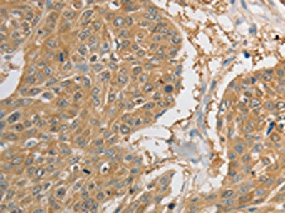 The image on the left is immunohistochemistry of paraffin-embedded Human esophagus cancer tissue using CSB-PA780249(PRDX1 Antibody) at dilution 1/20, on the right is treated with synthetic peptide. (Original magnification: ×200)