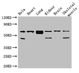 Positive WB detected in: Hela whole cell lysate, Mouse heart tissue, Mouse lung tissue, Mouse kidney tissue, Mouse brain tissue, Mouse skeletal muscle tissue