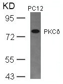 Western blot analysis of extracts from PC12 cells using PKCd(Ab-645) Antibody.
