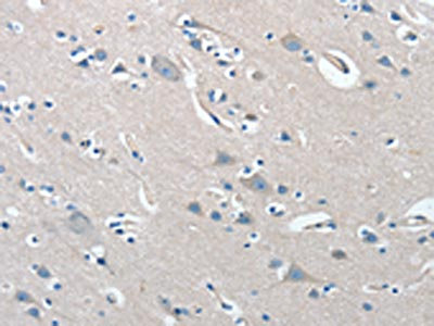 The image on the left is immunohistochemistry of paraffin-embedded Human brain tissue using CSB-PA905220(PRKX Antibody) at dilution 1/15, on the right is treated with synthetic peptide. (Original magnification: ×200)