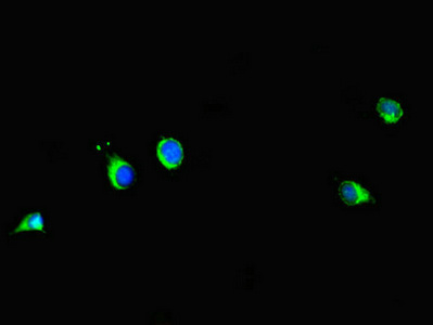 Immunofluorescent analysis of Hela cells using CSB-PA856972HA01HU at dilution of 1:100 and Alexa Fluor 488-congugated AffiniPure Goat Anti-Rabbit IgG(H+L)