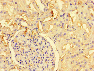 Immunohistochemistry of paraffin-embedded human kidney tissue using CSB-PA856972HA01HU at dilution of 1:100