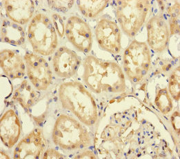 Immunohistochemistry of paraffin-embedded human kidney tissue using CSB-PA018768ESR1HU at dilution of 1:100