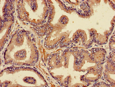 Immunohistochemistry of paraffin-embedded human prostate tissue using CSB-PA01374A0Rb at dilution of 1:100