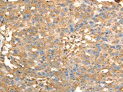 The image on the left is immunohistochemistry of paraffin-embedded Human liver cancer tissue using CSB-PA212713(PSMD9 Antibody) at dilution 1/40, on the right is treated with fusion protein. (Original magnification: ×200)