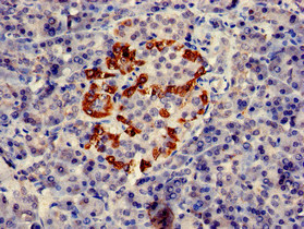 Immunohistochemistry of paraffin-embedded human pancreatic tissue using CSB-PA018967LA01HU at dilution of 1:100