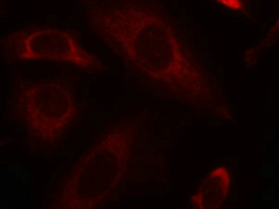 Immunofluorescence staining of methanol-fixed Hela cells using SHP-2(Ab-542) Antibody.