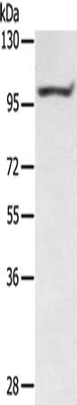 Gel: 6%SDS-PAGE, Lysate: 40 μg, Lane: Mouse muscle tissue, Primary antibody: CSB-PA391533(PTPN22 Antibody) at dilution 1/400, Secondary antibody: Goat anti rabbit IgG at 1/8000 dilution, Exposure time: 5 minutes
