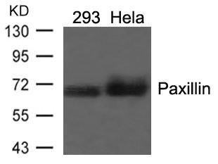 免疫原:Peptide sequence around aa. 116~120 (H-V-Y-S-F) derived from Human Paxillin.