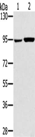 Gel: 6%SDS-PAGE, Lysate: 40 μg, Lane 1-2: 231 cells, PC3 cells, Primary antibody: CSB-PA830394(PYGL Antibody) at dilution 1/400, Secondary antibody: Goat anti rabbit IgG at 1/8000 dilution, Exposure time: 20 seconds