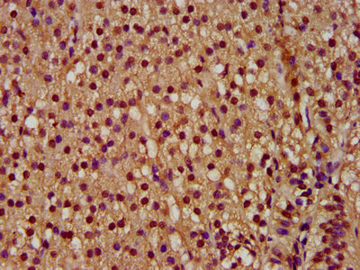IHC image of CSB-PA883586LA01HU diluted at 1:300 and staining in paraffin-embedded human ovarian cancer performed on a Leica BondTM system. After dewaxing and hydration, antigen retrieval was mediated by high pressure in a citrate buffer (pH 6.0). Section was blocked with 10% normal goat serum 30min at RT. Then primary antibody (1% BSA) was incubated at 4°C overnight. The primary is detected by a biotinylated secondary antibody and visualized using an HRP conjugated SP system.