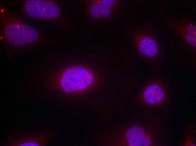 Immunofluorescence staining of methanol-fixed Hela cells using Cyclin B1(phospho-Ser147) Antibody.