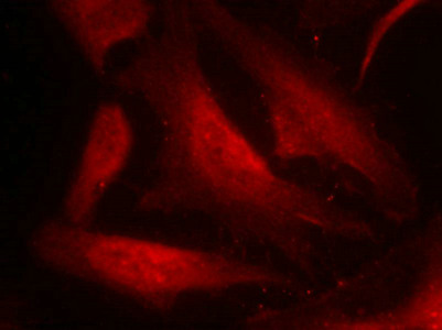 Immunofluorescence staining of methanol-fixed Hela cells using cdc25C(Phospho-Ser216) Antibody.
