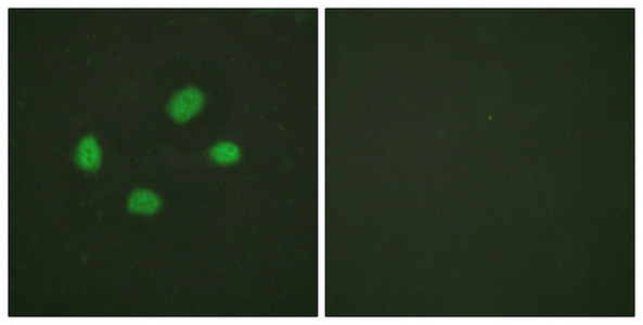 純化方式:Antibodies were produced by immunizing rabbits with synthetic phosphopeptide and KLH conjugates. Antibodies were purified by affinity-chromatography using epitope-specific phosphopeptide. Non-phospho specific antibodies were removed by chromatogramphy usi